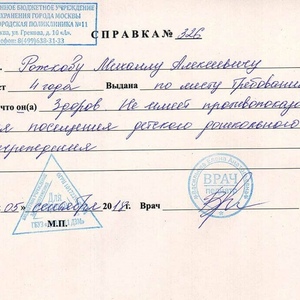 - Медицинская справка об отсутствии контактов с инфекционными больными (эпидокружение)