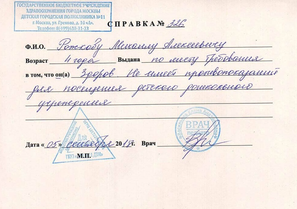 Наличие справки является обязательным условием. Ведь дошкольное заведение действует согласно законодательству и стандартам санитарно-эпидемиологических требований. Исходя из чего для дальнейшего посещения нужен документ. Врач может его выдать с учетом следующих факторов: