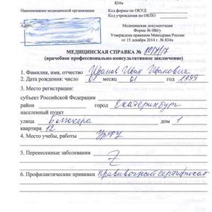 - Медицинская справка об отсутствии контактов с инфекционными больными (эпидокружение)