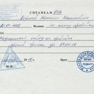 - Справка от педиатра в сад