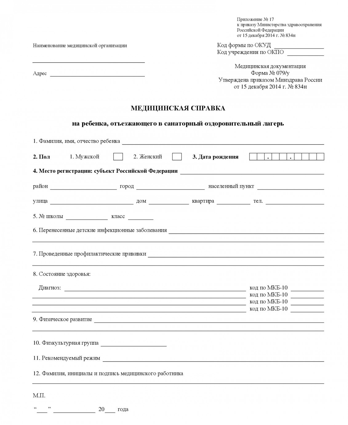 Справка в лагерь 079 у
