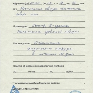 Согласитесь, что никому не захочется тратить свое время в очередях. Поэтому на нашем сайте вы можете заказать документ всего за 15 минут, а уже завтра он будет у вас на руках. Справка оплачивается только после получения и проверки всех данных. Мы готовы оформить справку из травмпункта даже если у вас минимальные повреждения — таким образом вы сможете закрыть прогул на работе, подтвердив причину своего отсутствия. У нас самые низкие цены и только оригинальные бланки с заверенными печатями медицинских учреждений.