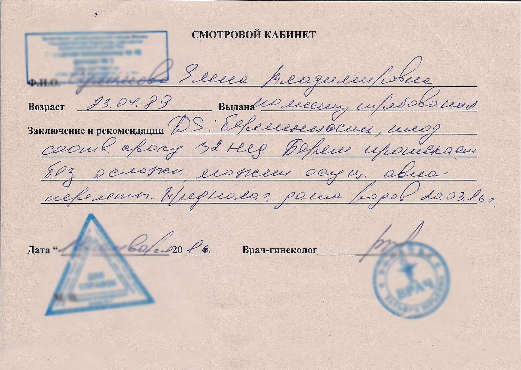 Сложности при получении справки от гинеколога с печатью