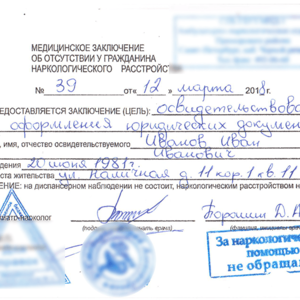 И только после прохождения вышеперечисленных процедур, которые подтвердят чистоту организма и адекватности гражданина, можно получить справку от нарколога.